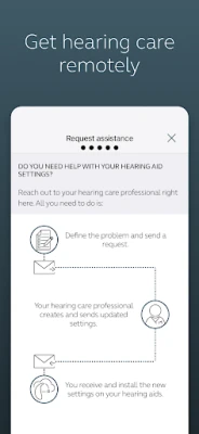 • Enjoy optimization anywhere with online services: Request help with your hearing aid settings from your hearing care professional and receive new settings and software updates.